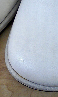 ま、爪先部分の画像を見て頂ければ分かる通り、さほど斑点は目立ちません。…が、画像よりは、実物はもうちょっと斑点濃いかも…。(携帯カメラの限界ですね…)