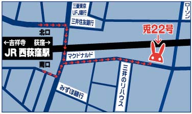 〒167-0053 杉並区西荻南3-17-1 OPEN:12:00〜20:00 詳しくは、カテゴリーの「アクセス」をご参照ください。